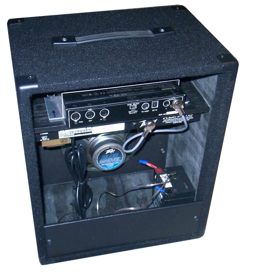 The Synth Amp project was a specific request from a client. We were asked to design and build a battery powered, lightweight single system to house a small amplifier, speaker, and two rack synthesizers. In other words, this is a small keyboard amp built into a custom case to include a gel-cell battery and two music synthesizers. This particular client is a wind synth (wind controller) player, using the rig for pit orchestra and street performances while playing the WX5 and VL70 music synthesizer. The second